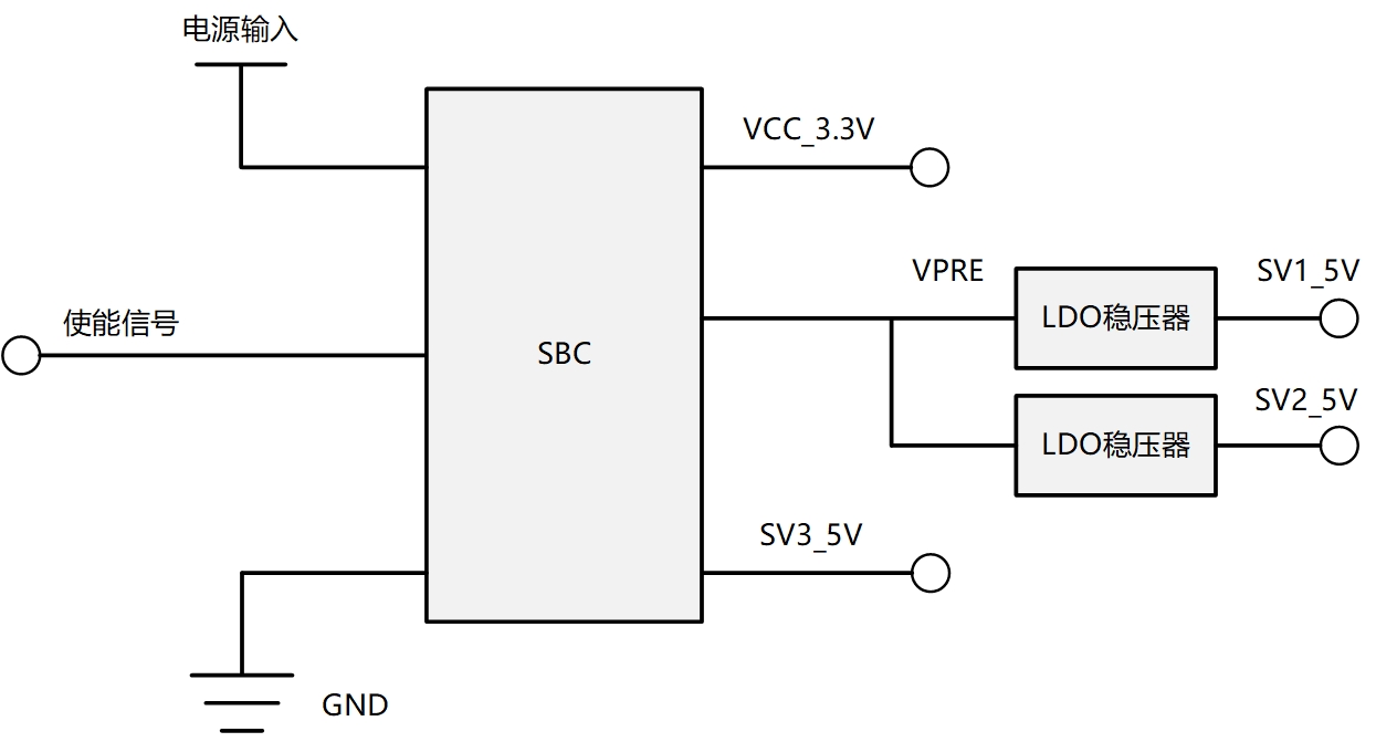 电源芯片具备过流及短路保护,对5V电源输出电压具有采集监控功能。电源芯片需具备外部使能信号,可实现硬线唤醒。