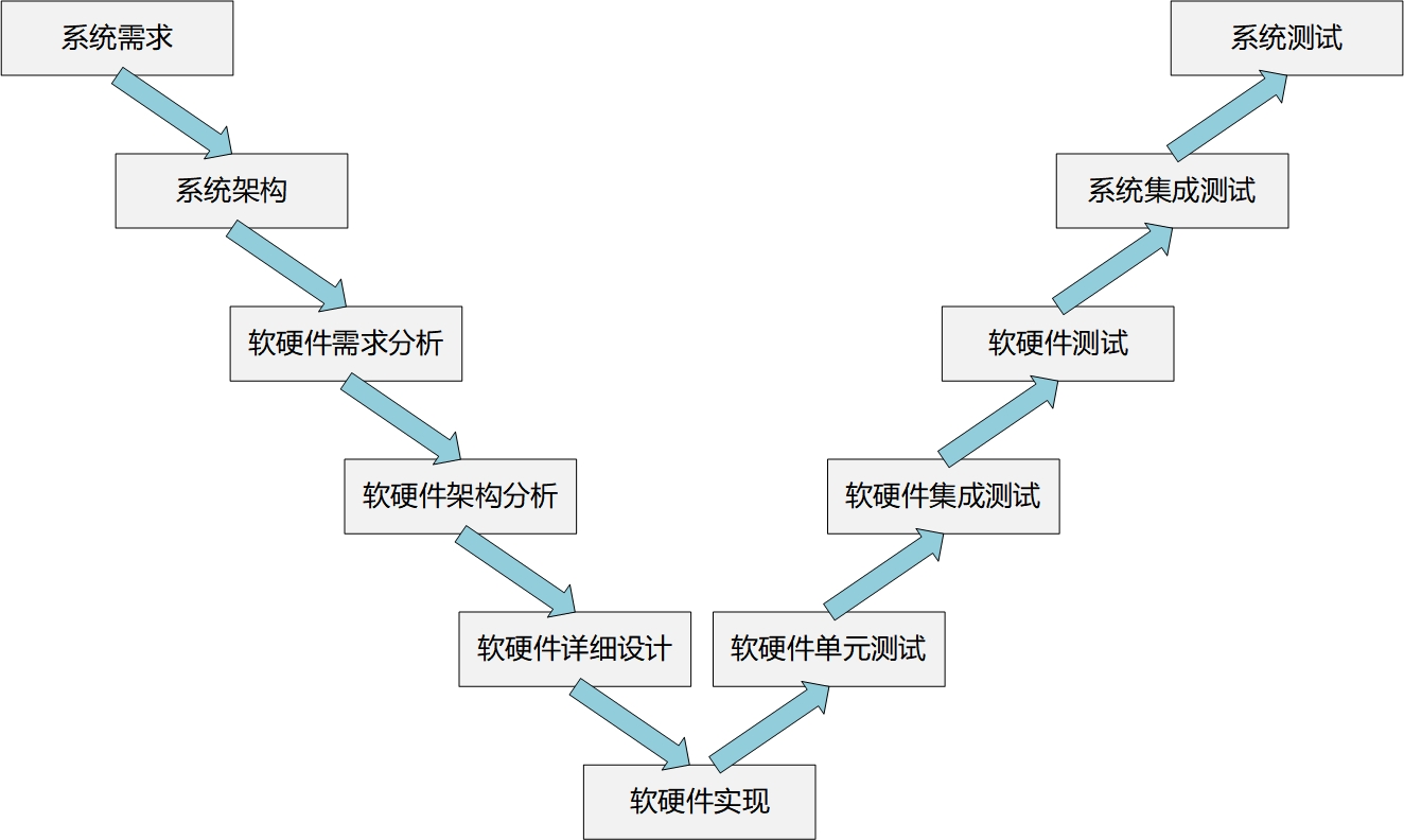 系统级产品开发。参照V模型,对产品软硬件进行开发、测试、集成、验证。