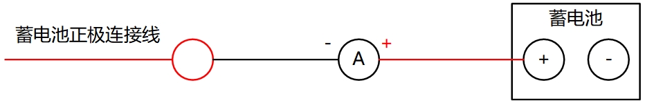 将万用表调至最大安培档(此时万用表应处于OFF状态),拆下蓄电池的正极桩头上的连接线,将万用表红表笔与蓄电池正极桩头连接,黑表笔与连接线连接,使万用表串联在整车回路中,如下图所示。