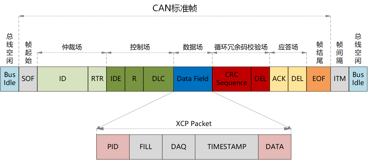 CAN协议与XCP Packet的对应关系如图3-2所示。
