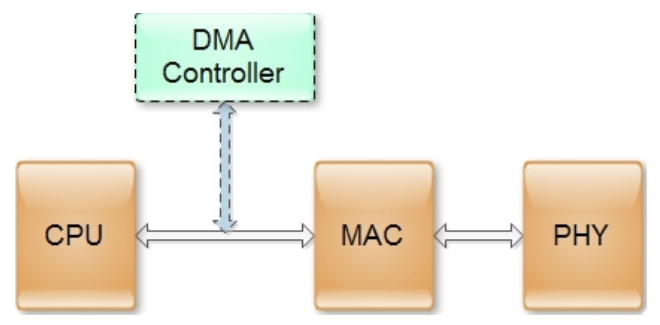 从硬件的角度看,以太网接口电路主要由MAC和PHY两部分组成,如下图所示: