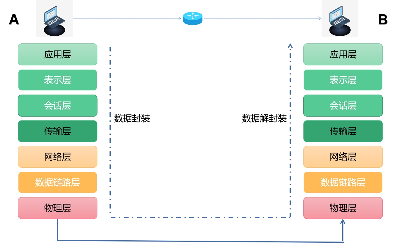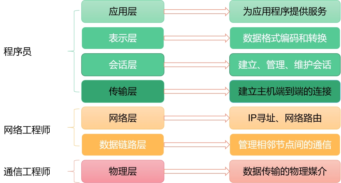 OSI(Open System Interconnect,开放式系统互联)七层模型是网络通信体系的基础框架。各类网络设备和协议在设计时都按照这一模型进行分层,从而保证不同设备和系统之间能够相互通信与协同工作。七层模型中每一层都对应特定的功能与职责,用以支持完整的数据传输过程。OSI参考模型各个层的基本功能见下图。