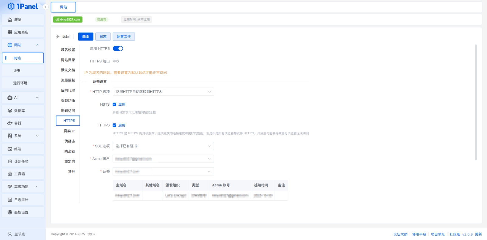 解决:在 1Panel 上启用 Let’s Encrypt 证书 + 反代 3000。