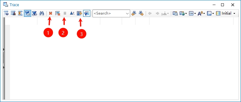 打开后Trace的界面如下所示:其中三个标志分别代表