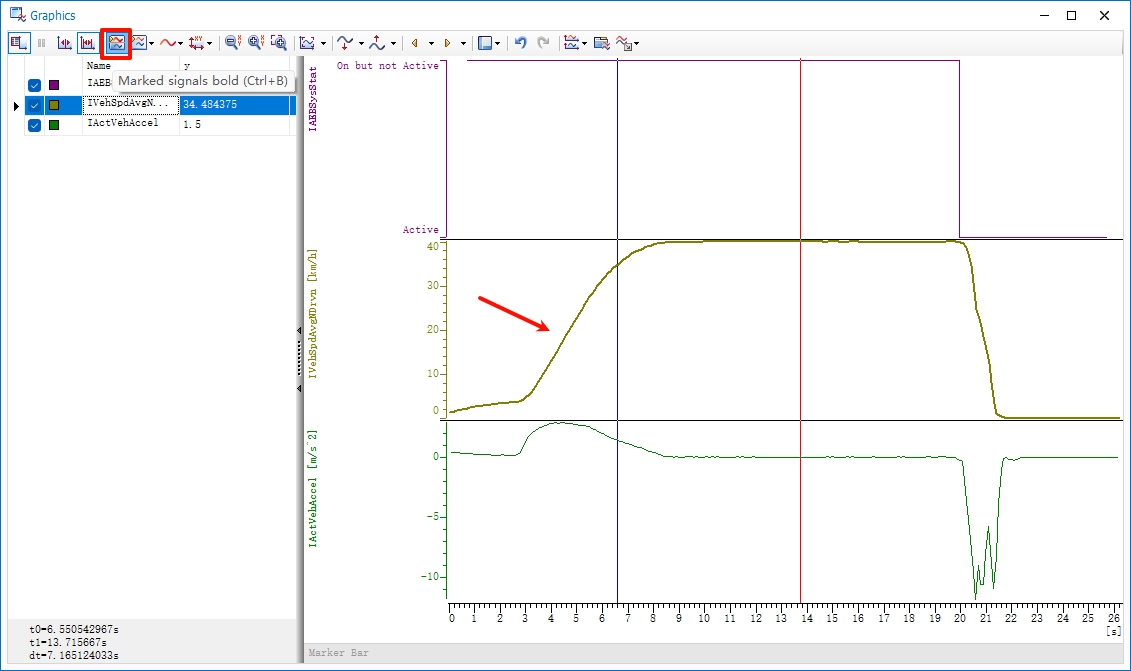 通过 Highlight Signal 功能,将选定信号曲线加粗并改变样式,便于关注关键变量。