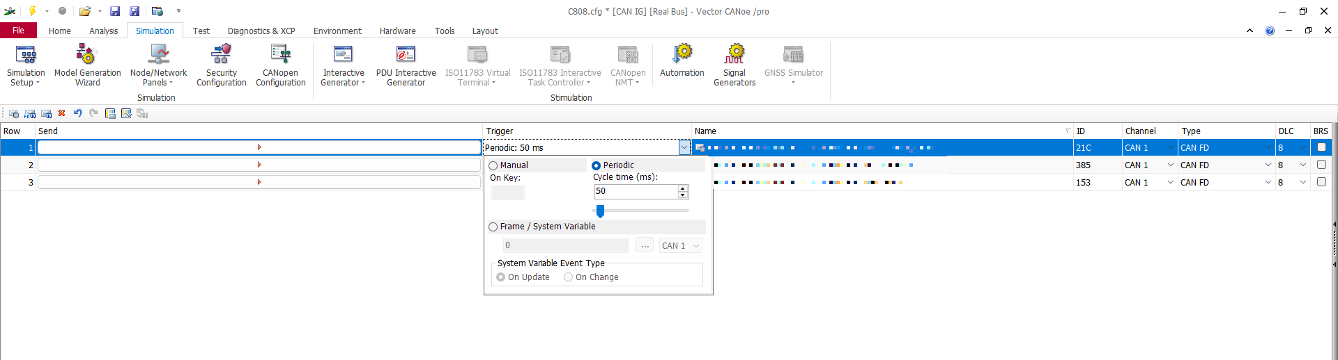 在某些测试或验证场景中,我们需要模拟ECU向目标模块发送CAN/CAN FD报文。此时可以使用IG(Interactive Generator)模块来实现。