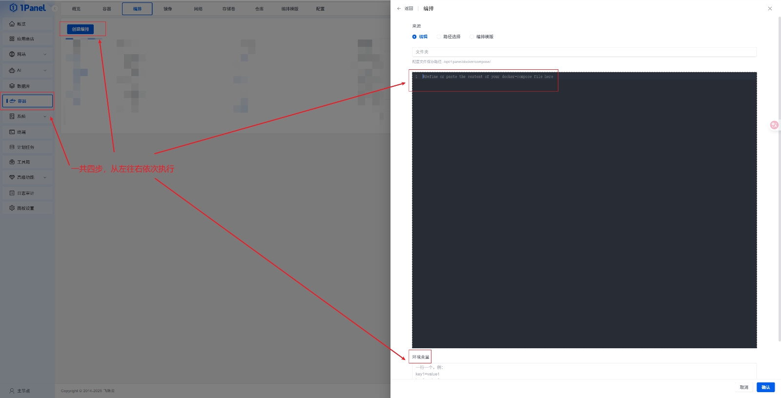 在编排的下面一栏的环境变量中配置: