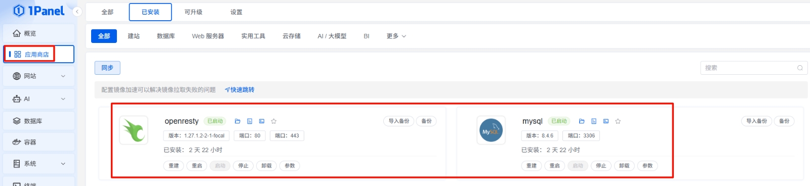 首先在应用商店下载openresty和mysql。